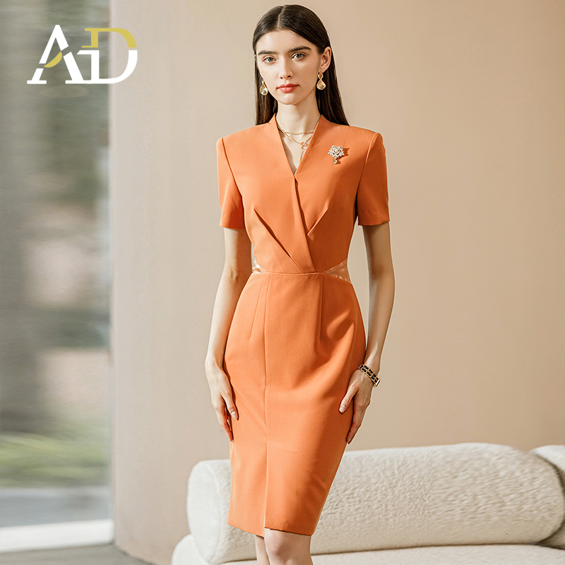 Manufacturer Wholesale Orange Ladies Dresses Office Wear Ad Dress For Women Formal